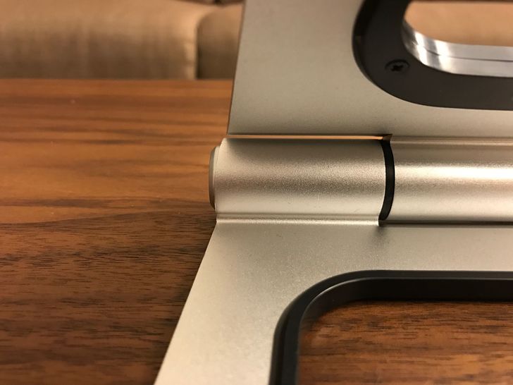 ▼ 筆電與 Apex Stand 之間形成 1 到 2 mm 的距離,轉軸側面還有水波紋的造型,這個角度看起來跟 Apple Wireless Keyboard 的側面非常神似。