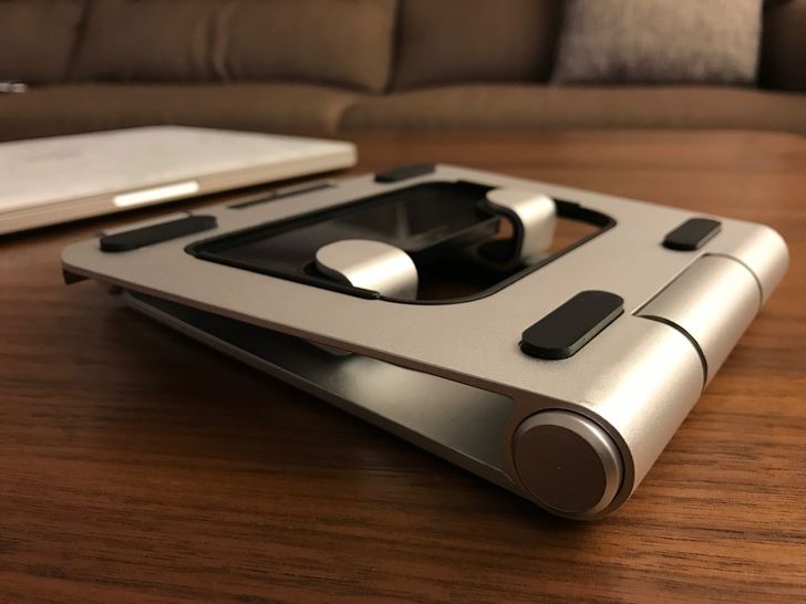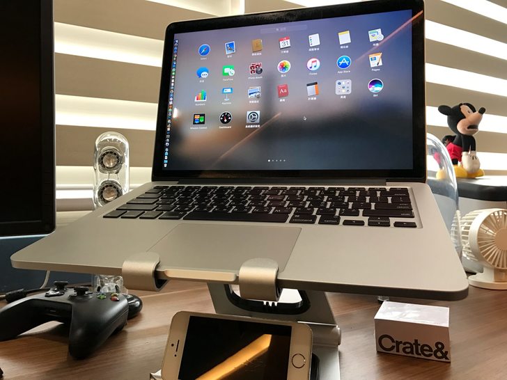 從約十年前買了第一台 MacBook 小白之後,至今也用過了不少筆電架、散熱墊等這種產品,比如說早期放在桌上很大一片,可以稍讓筆電墊高、傾斜,下面還有兩顆大風扇,好似散熱功能很強大一樣,殊不知 MacBook 的散熱口在後面,底部的風扇根本於事無補。也有用過可以折疊還帶有腳架,可以架在床上當懶人的筆電桌(?)不過整個不只體積笨重,連塑膠味也很重,超醜。