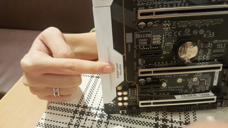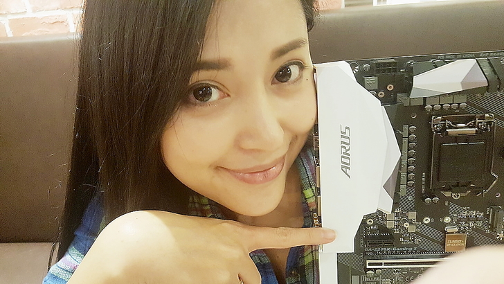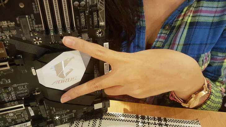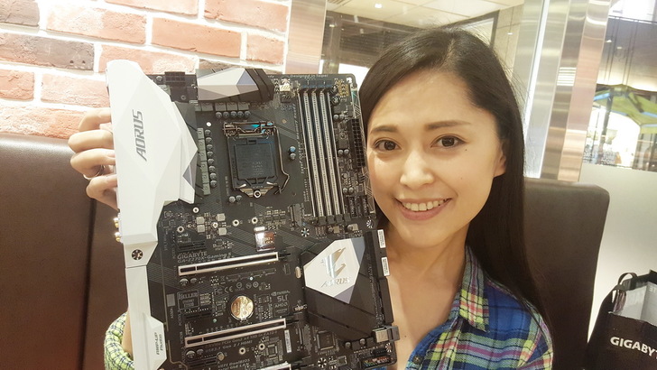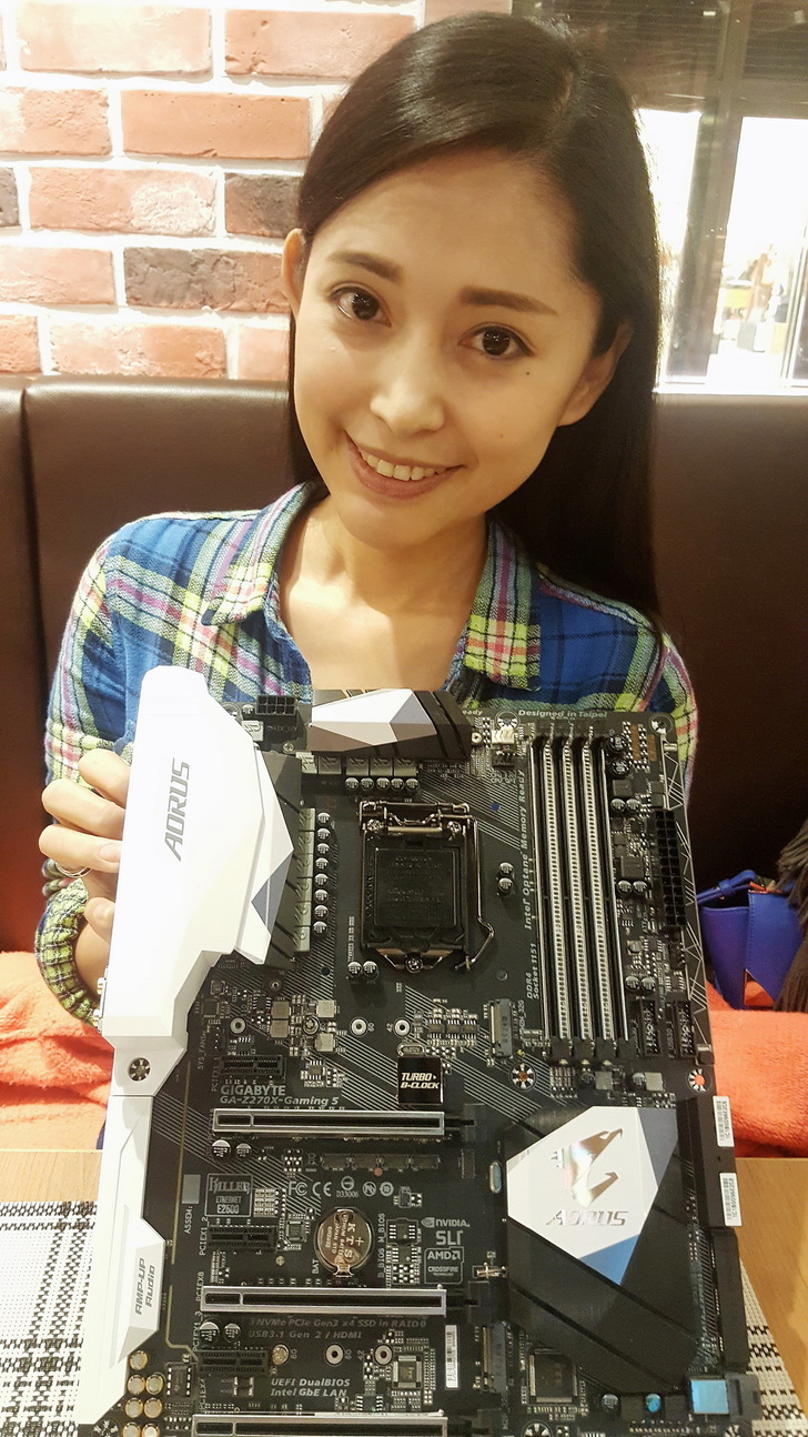 ▼ AORUS Z270X-GAMING 5主機板 採用ATX的尺寸,用美女的臉來比較,就知道 散熱片 真的超大。