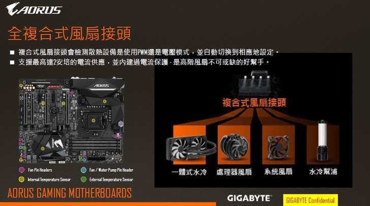 ▼ 全複合式風扇接頭:不論是使用哪種散熱風扇,會自動檢測模式並切換到相應設定;接頭皆支援最高2安培的電流,並內建過電流保護。