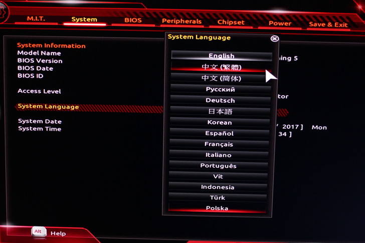 ▼ BIOS一開始是英文,有多國語系可以選擇。
