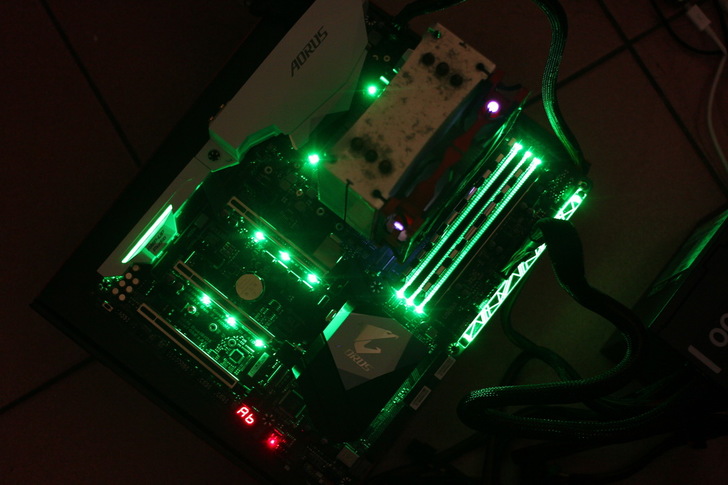 ▼ 開機以後 各區域的LED及燈條皆會發光,把燈光關掉超閃亮。