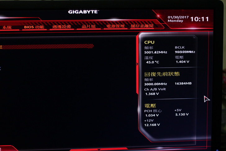 ▼ 此時 CPU由原來的 4.5GHz 超頻至 5GHz,記憶體也從原來的 2400MHz 超頻至 3000MHz。