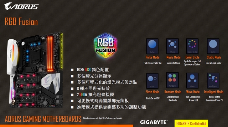 ▼ RGB FUSION應用軟體:自行調整主機板不同位置 LED的燈色與顯示模式。