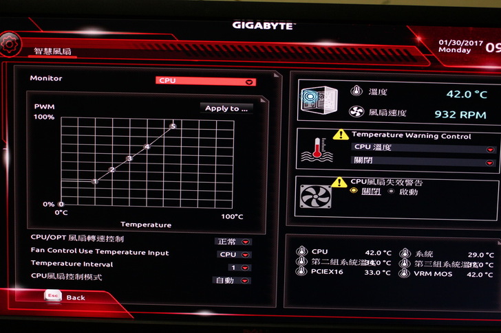▼ 智慧風扇設定:除了可控制風扇,也可以看到 系統溫度、CPU溫度、PCIe溫度、VRM MOS溫度。