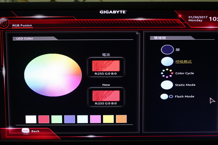 ▼ BIOS的環境燈選項:除了自訂顏色外,也可以選擇顏色顯示方式。