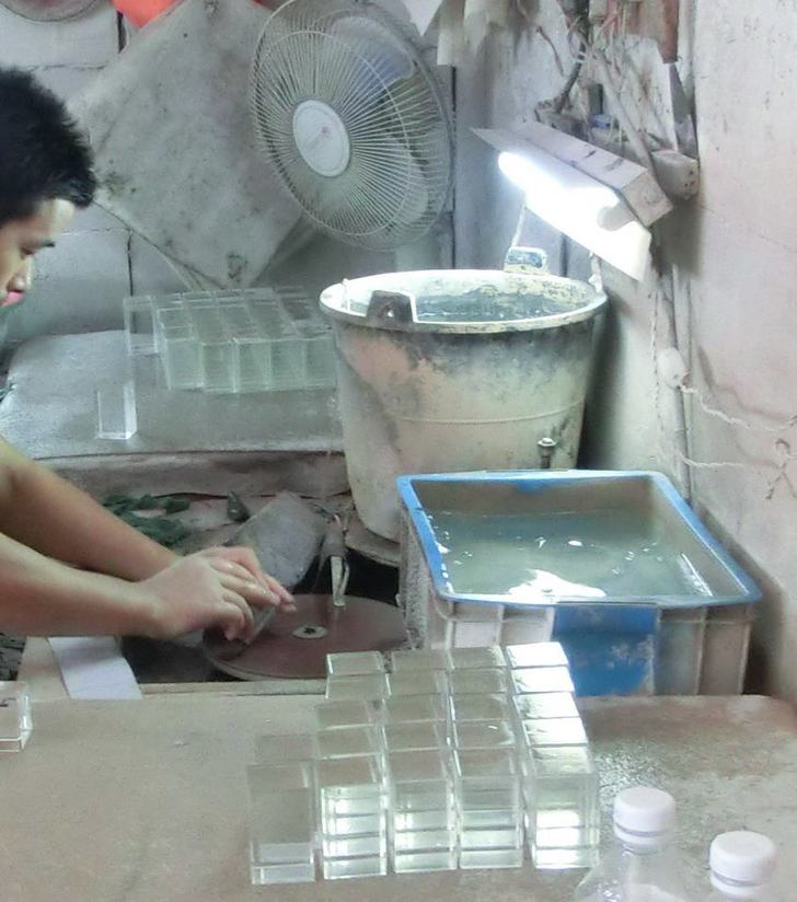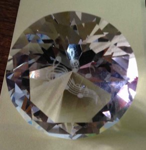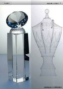 而經過無數次的失敗,在101次中,終於克服了種種失敗因素與困難,製成了原材料,並以鑽石星刻面、冠部主刻面、腰上刻面的刻面車工技藝,設計產生了天然鑽石透明及折射七彩光芒的驚人效果,而這個原材料就是人工水晶。