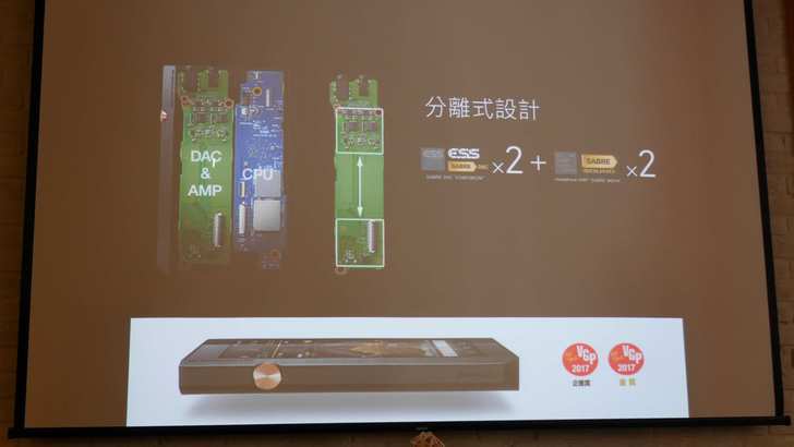 ▼硬體上採用DAC/AMP 與CPU電路分離設計 與雙DAC回路(兩組 “ES9018K2M DAC”+”SABRE 9601K”),除了防止電流干擾外並提供最佳的音色處理。而ACG 用來消除失真,讓聲音保持清澈。電力方面播放時間