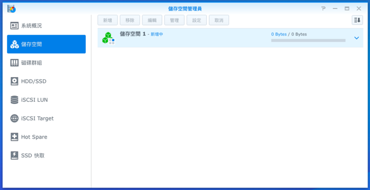 Synology NAS 一買來裝好硬碟和 DSM 系統後,我們需要建立儲存空間來設定硬碟空間。
