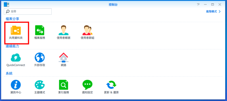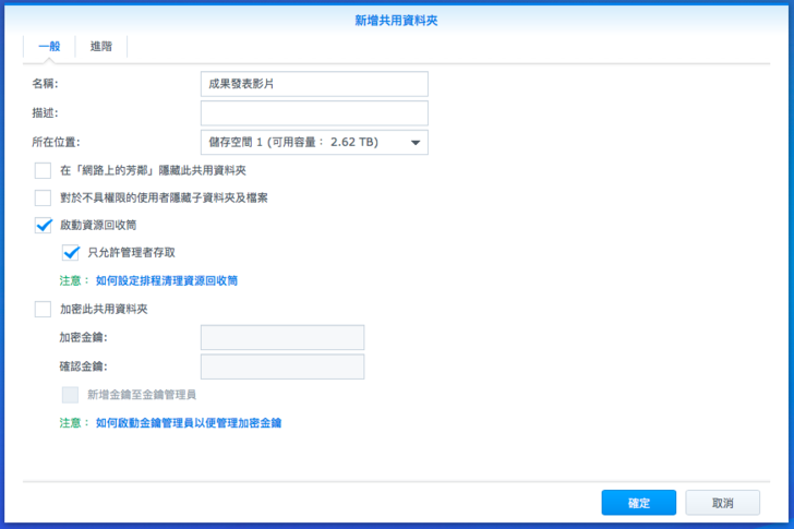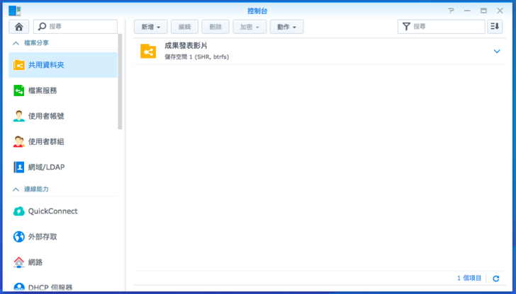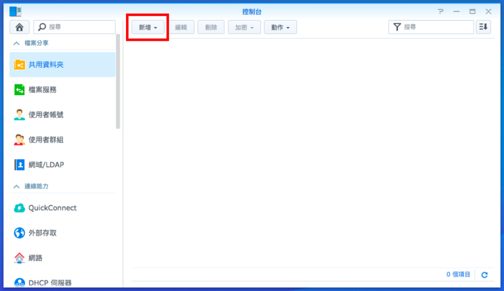 建立完儲存空間以後,接下來我們要新增共用資料夾,才能夠把檔案放到 NAS 裡面。