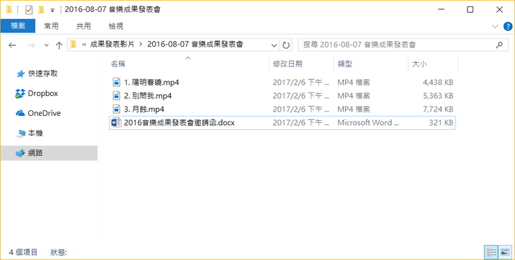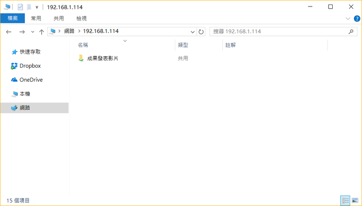 打開後會看到我們剛剛新增的共用資料夾【成果發表影片】,點進去這個資料夾後,將檔案複製過去。