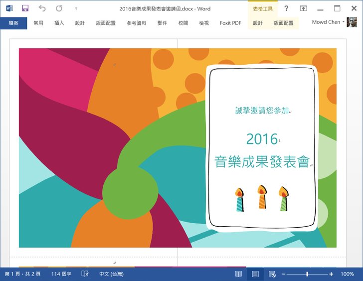 下面是【2016音樂成果發表會邀請函.docx】這份 Word 檔案的內容。