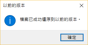 按下還原按鈕之後會出現一個確認視窗,確認之後就可以成功將檔案恢復到先前的樣子了!
