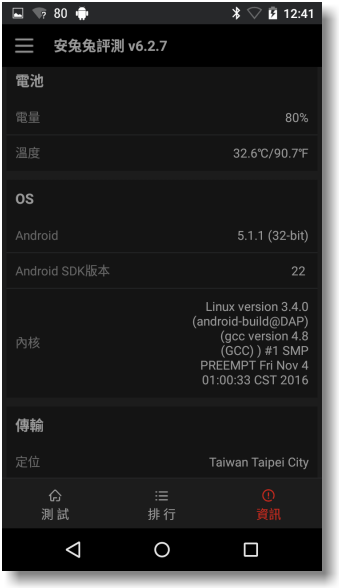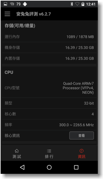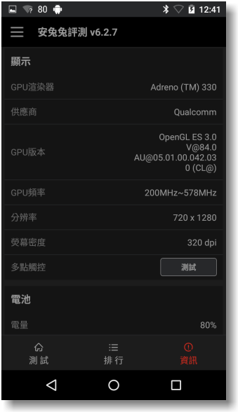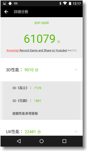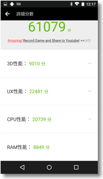 ▲跑一下安兔兔V6.2.7版可得到61079分,和其他網友測試分數差不多,都有6萬分以上。