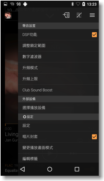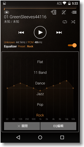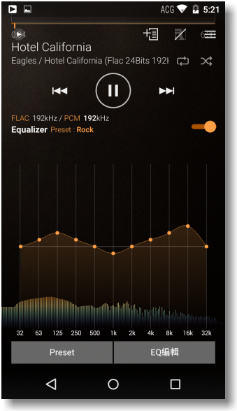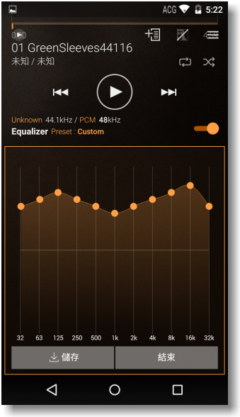 ▲若覺得內建的EQ模式不能展現歌曲的意境,另外也可以透過EQ自定編輯來調整;還有更多其它功能選項,可以開啟右上的選單來調整。