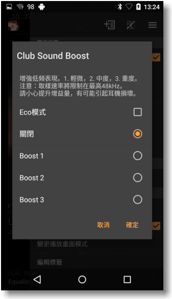 ▲在此可以調整《濾波器方式》、開啟《升頻模式》、調整《升頻頻率》和《Club Sound Boost》模式等等。