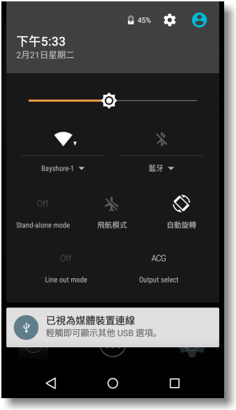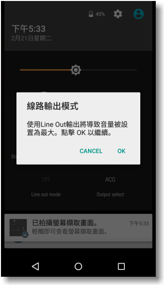 ▲而從螢幕上方下拉後,也有線路輸出的模式可以選擇,不過要小心突如而來的音量喔。