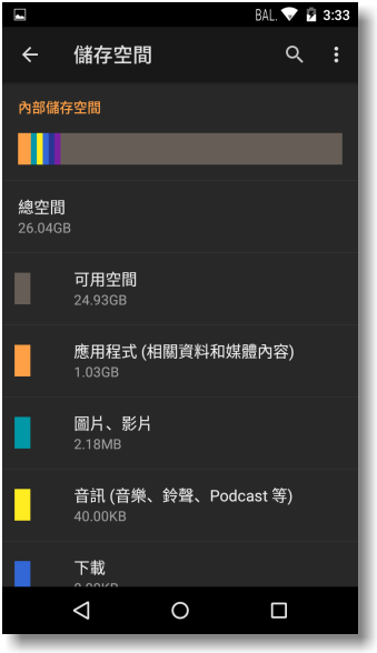 ▲2G DDR3 RAM,開機後約剩1.3GB;32GB ROM,約剩25GB的可用空間。
