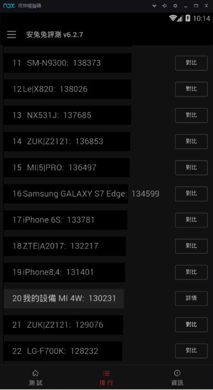 從安兔兔跑分的結果來看,夜神安卓模擬器的性能優化還是較為理想的,擁有安卓4.4.2內核的夜神模擬器與市面上大多採用Bluestacks內核的模擬器相比已然是遙遙領先,可見夜神安卓模擬器對於安卓模擬器的總體表現有著重要的意義。而在跑分方面夜神安卓模擬器已經達到了13萬分,相當於電腦裝著一隻iPhone 6S等級手機,遠超於市面上中階的機型,例如搭載了驍龍820處理器的ZUK Z2 Pro手機(大陸品牌),可見目前夜神安卓模擬器在跑分方面已經超越了絕大部分手機。但是跑分只是一個參考,實際的體驗如何我們還需要進一步的測試。