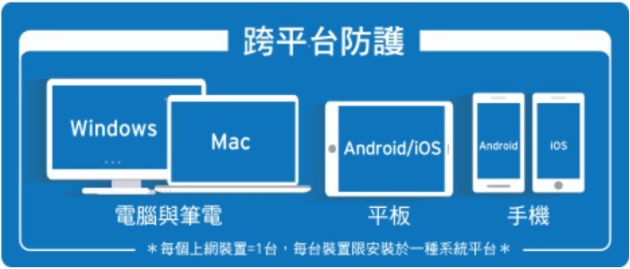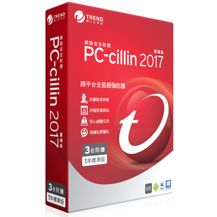 此外,「PC-cillin2017雲端版」不但保護電腦與筆電,同時也可以保護手機與平板,無論是Android還是IOS,或者是Windows還是Mac,都可以幫你顧好好,給你滴水不漏的保護。