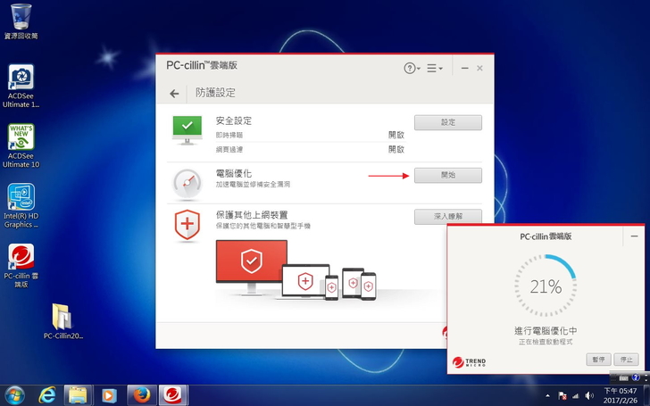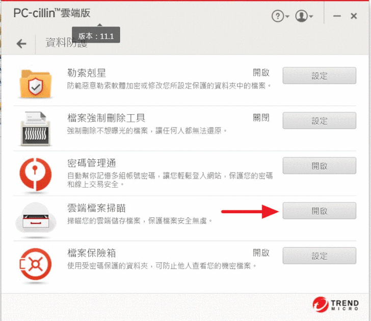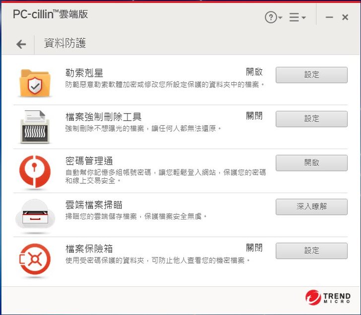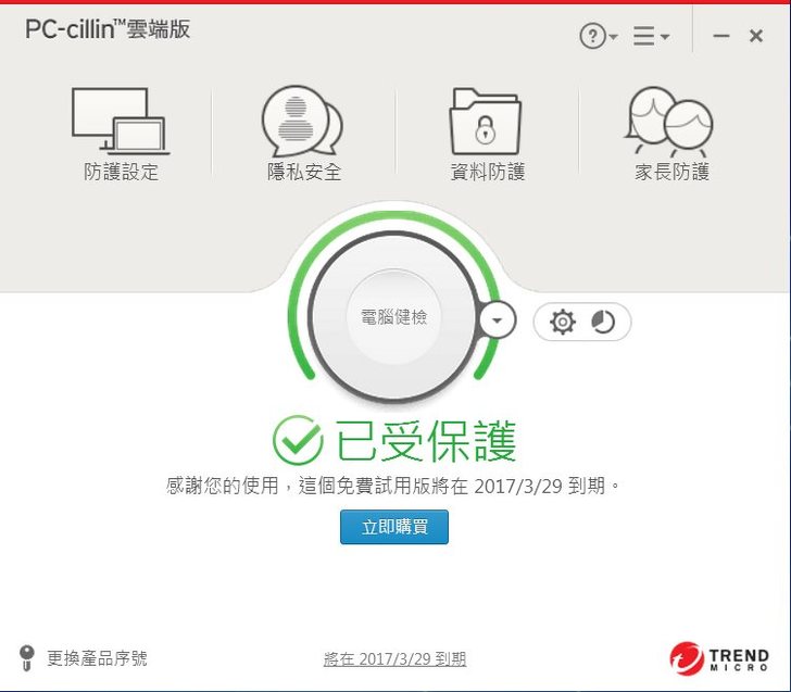 讓我們看看「PC-cillin2017雲端版」的主要畫面