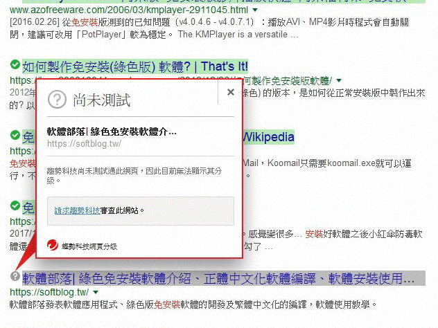 網路使用者可以向趨勢科技申請掃描此網站,如果你是網站所有人更可以向趨勢科技申請掃描網站,等到掃描通過後,就會變成綠色的連結囉。
