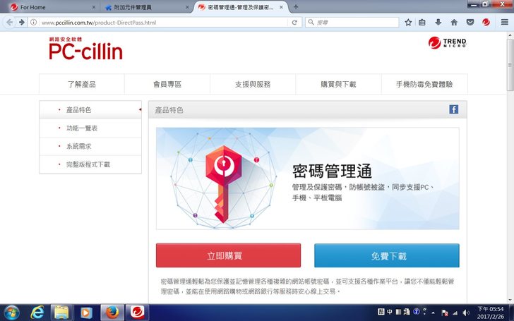 按下「深入了解」之後,連上了趨勢科技的網站,這是「密碼管理通」的網站,「密碼管理通」可以視為「PC-cillin2017雲端版」的輔助程式。這程式很有趣也很有用,維克多後面會仔細的介紹一番。