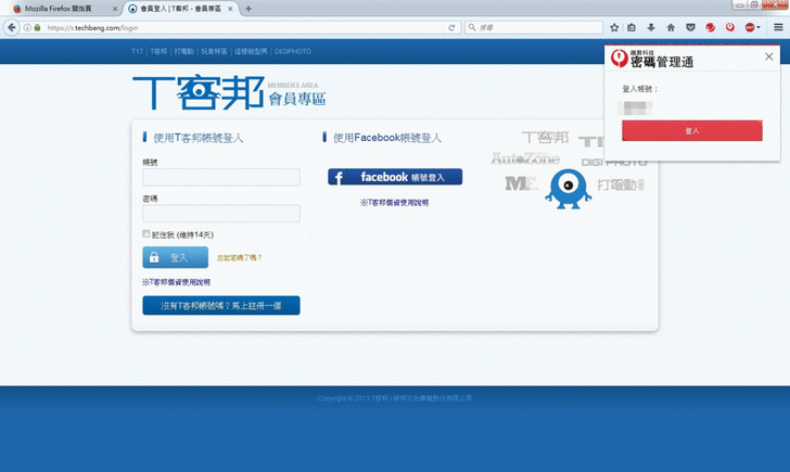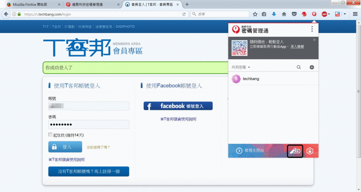 按下techbang,畫面直接跳到T客邦的登入畫面,下一秒就自動登入成功了。是不是好棒棒?