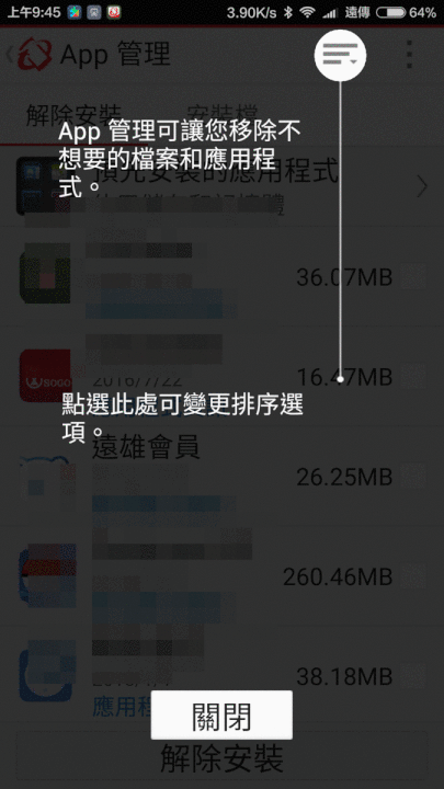 可以卸載不需要的APP,同時也可以將手機內佔空間的APK檔刪除。