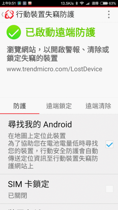進入「行動裝置失竊防護」,把尋找我的android打勾,基本上防護就已經開始了。