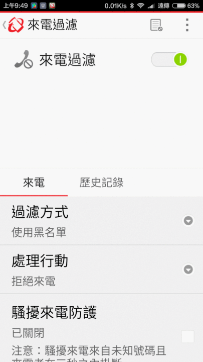 如果你接到怪怪的電話,你就把他列入黑名單,如果下次再打來,他就打不進來了。我這幾天沒接到什麼推銷的電話,所以沒有辦法測試這個功能,不過這樣是最好的,平安是福啊。