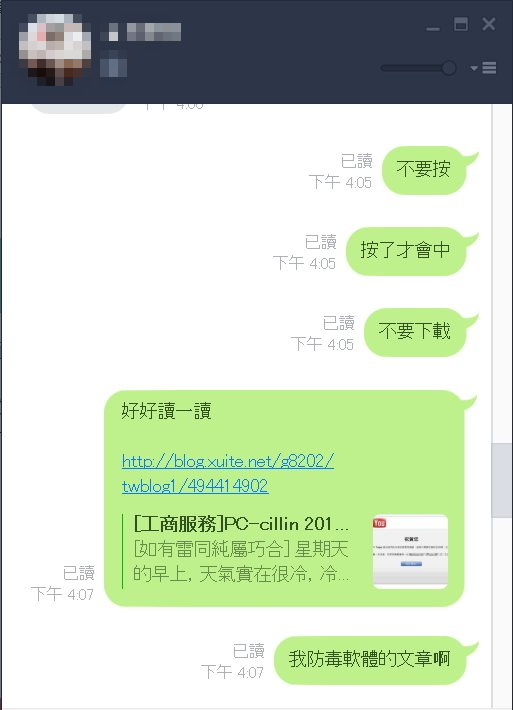 希望他能聽我的勸,快安裝PC-cillin2017雲端版吧。