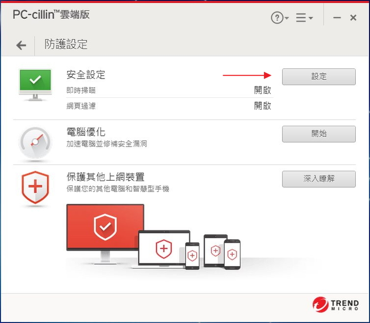 在這個設定之下分為「安全設定」,「電腦優化」與「保護其他上網裝置」。