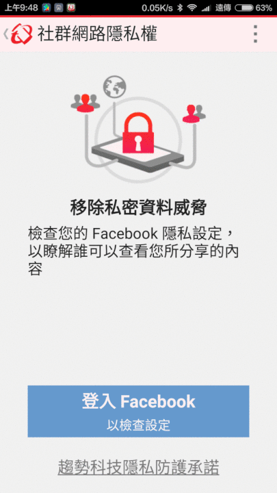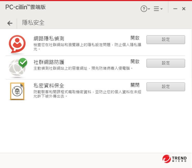 這個功能跟電腦版的一樣,不過我之前在「PC-cillin2017雲端版」中已經修正了隱私設定,這裡當然是OK沒問題了。