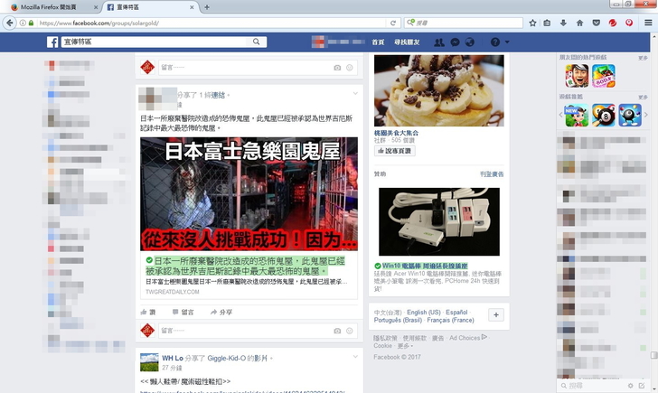 這是我臉書的畫面,綠色的連結是「PC-cillin2017雲端版」幫你確認安全的連結,但一個疑似是農場文,一個是廣告。