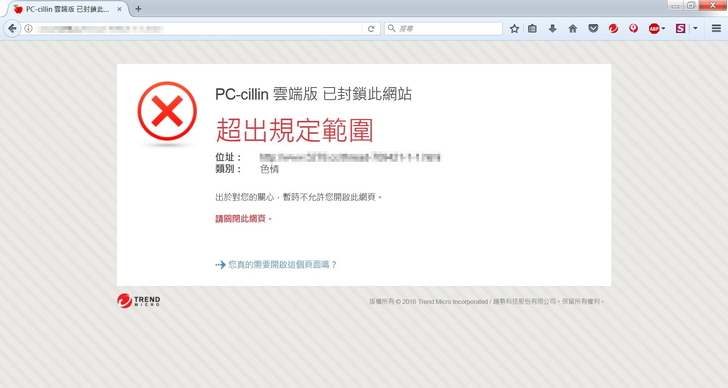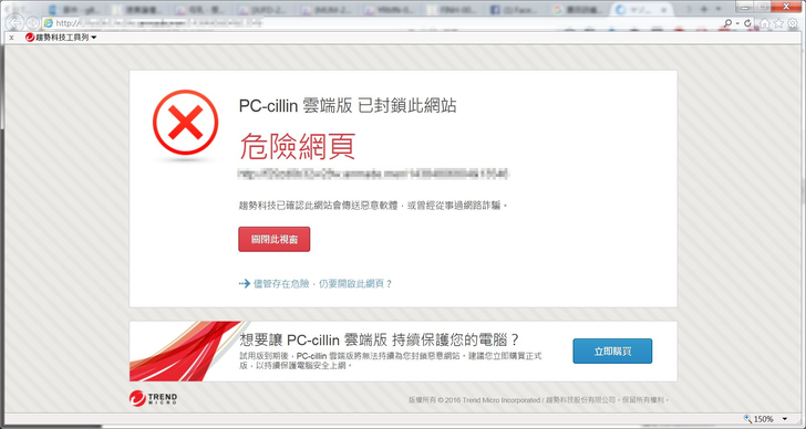 別說Internet防護沒有用,「PC-cillin2017雲端版」立馬就從網站的廣告中的廣告抓到有害網頁了