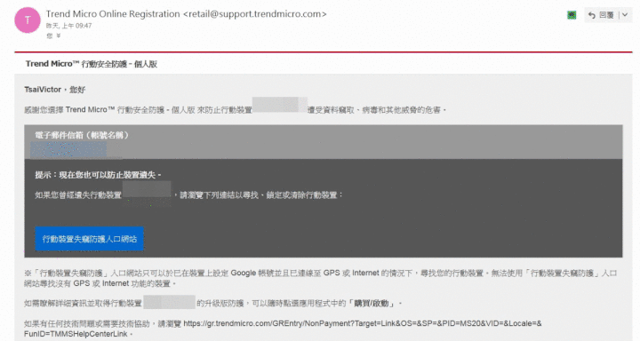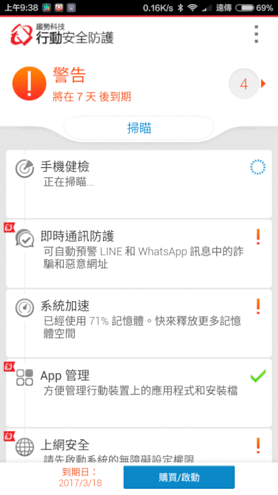 請注意:「趨勢科技行動安全防護與防毒」只有七天試用期喔。
