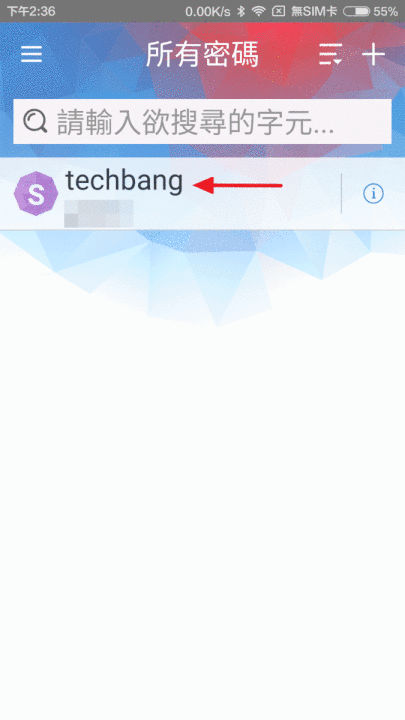 安裝「密碼管理通」之後,因為資料都已經在雲端,所以只要你輸入與電腦版一樣的帳號密碼,即可進入行動版的「密碼管理通」。你看我剛剛在電腦上設定T客邦的資料,在手機上也看得到。