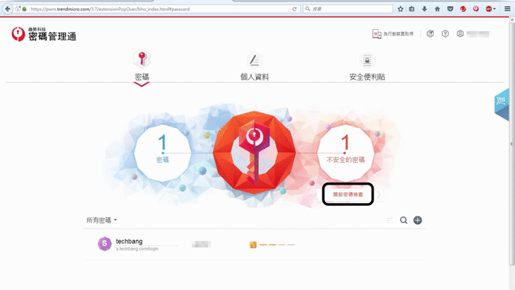 在「密碼管理通」的管理主控台中,除了管理密碼之外,還有「個人資料」與「安全便利貼」兩項功能