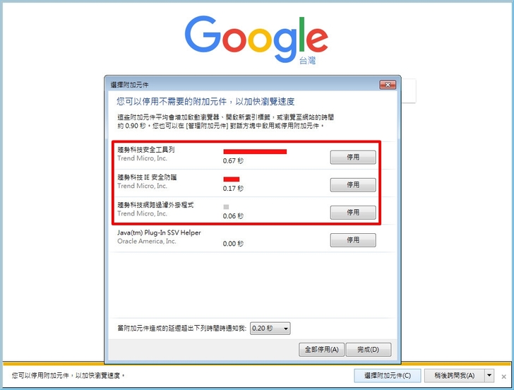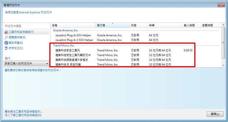 【▼】若想知道更詳細的附加元件啟用或停用狀態,可至IE中的管理附加元件作設定。