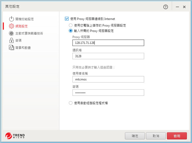 【▼】網路設定中,能認證使用Proxy伺服器連線到網際網路。