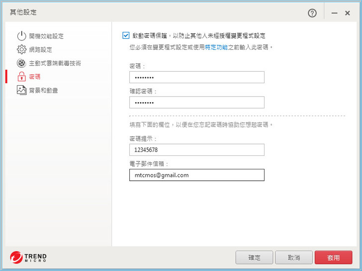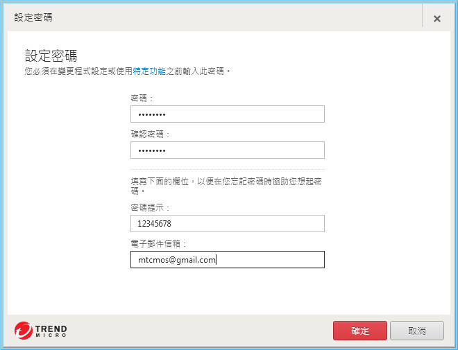 【▼】未開啟其他各項功能,第一次會跳出以下的設定密碼畫面,請依序填寫後,最後點選「確定」即可完成。