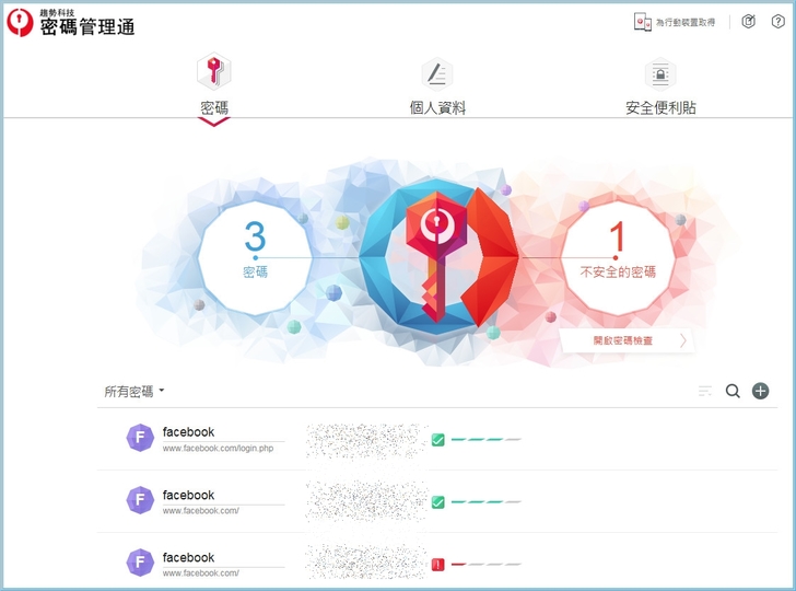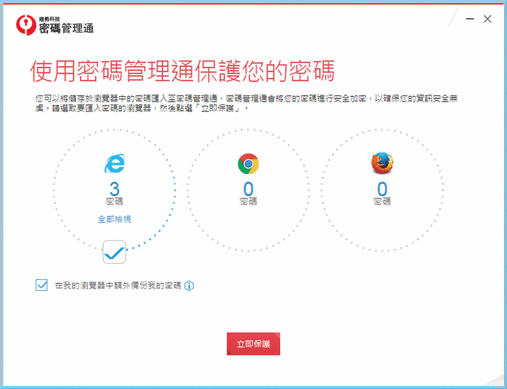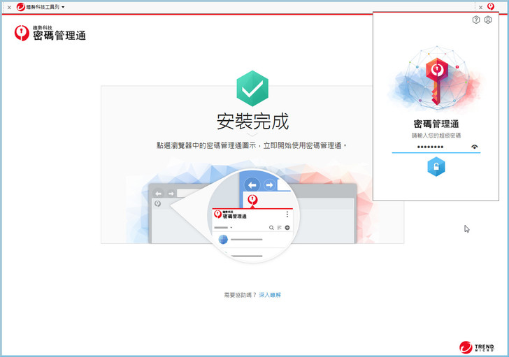 【▼】保護瀏覽器密碼能一次滿足三大瀏覽器,保護並記憶管理各種複雜的網站帳號密碼,並可支援各種作業平台,讓您不僅能輕鬆管理密碼,並能在使用網路購物或網路銀行等服務時安心線上交易。由於之前驚傳漏洞,所以現在除了要登入趨勢帳號外,還得輸入一次本地的超級密碼後才能登入,這章節我在資料防護章節會再詳細說明。
