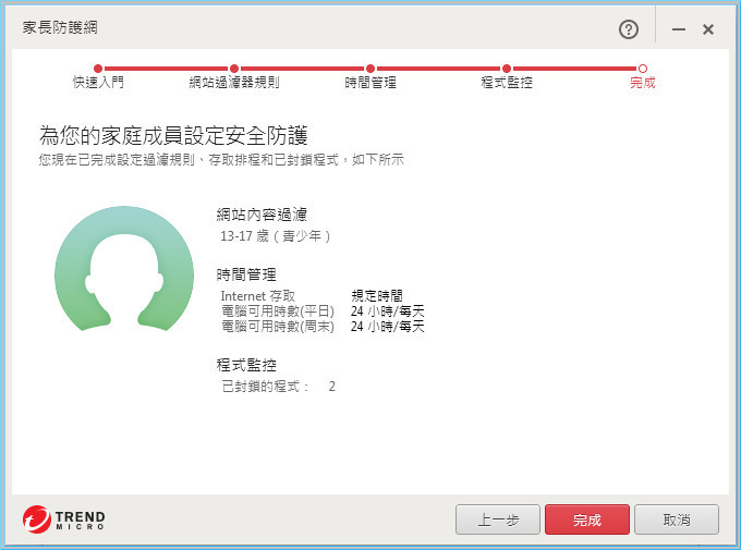 【▼】即使完成後,也還可以針對網站內容過濾、時間管理與程式監控作調整,公用電腦亦可對不同Windows使用者作設定,彈性相當自由。
