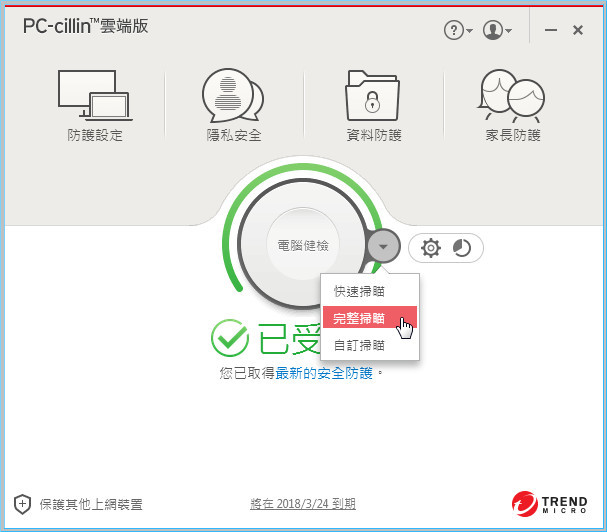 小編:沒再怕的啦!馬上透過趨勢PC-cillin 2017雲端版主畫面的完整掃描掃給你看!