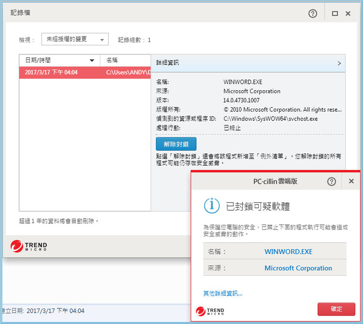 小編:是趨勢PC-cillin 2017雲端版,比卡巴和小紅傘都強唷,就如同電影惡靈古堡最終章中的保護傘公司,爛帳該在此終結,我來Demo給妳看看。