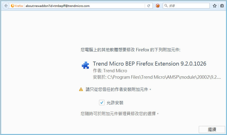 【▼】要在其他瀏覽器上安裝趨勢科技工具列,可用附加元件的方式來安裝。