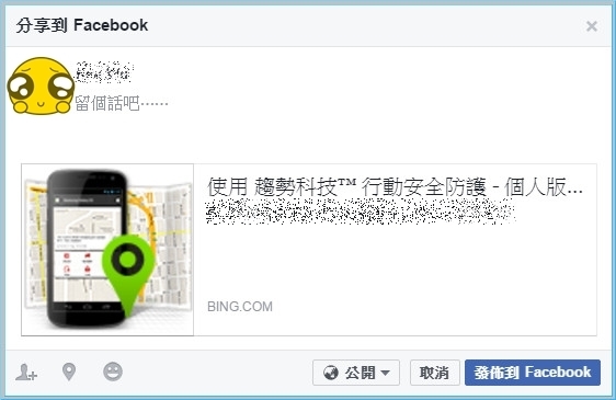 【▼】【趨勢科技行動安全防護】->【社群網路隱私權】,現在不只小朋友要用臉書當家庭聯絡簿,連阿公阿嬤也搶著抽獎,不過相對的隱私就顯得特別重要,這個功能能自動幫你修正隱私權問題,包含貼文誰能看見、Tag標籤與個人動態資訊等。