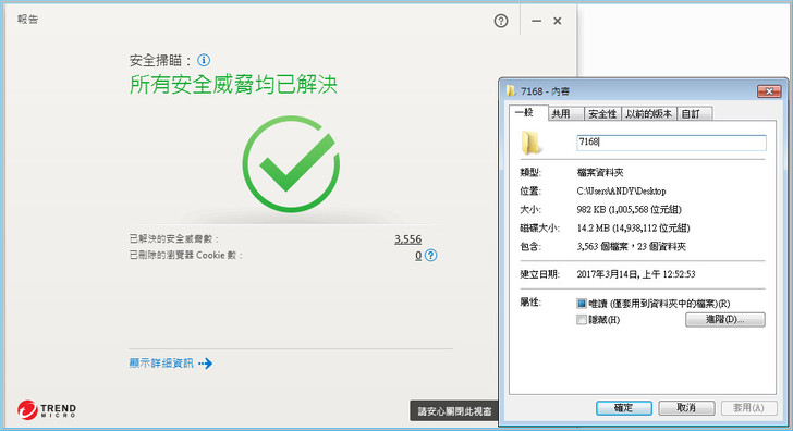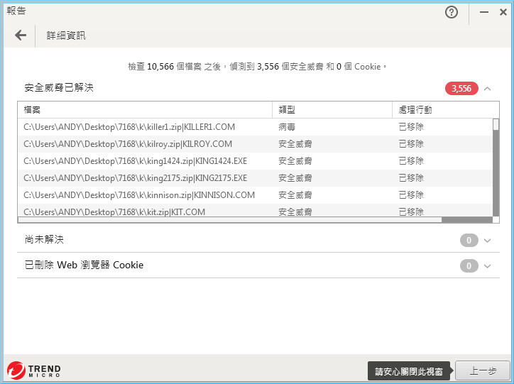 【▼】小編:有些檔案中了複合式病毒,掃一次就清空移除,當然安全威脅已全部獲得解決。