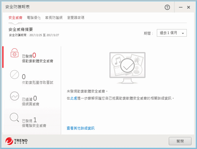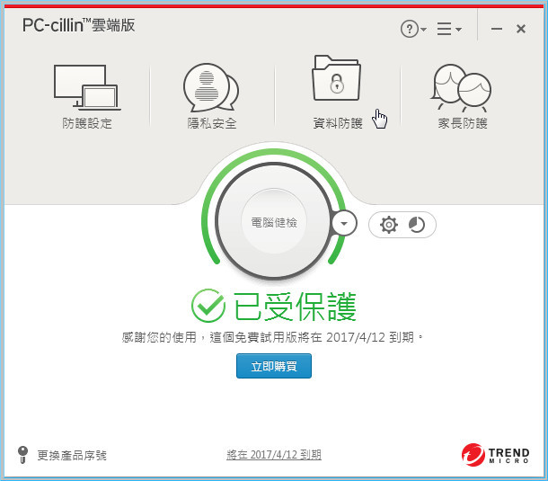 【▼】趨勢PC-cillin 2017雲端版主畫面有四大功能: